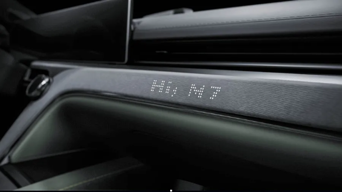 而在副驾前方还有一块i-Surf点阵屏,同样可以显示时间、天气等基本信息之外,另外还可以基于场景化设定展现迎宾、开门提醒等功能,更可以自定义各种图片、动画等趣味内容,为整个座舱增添了不少乐趣。