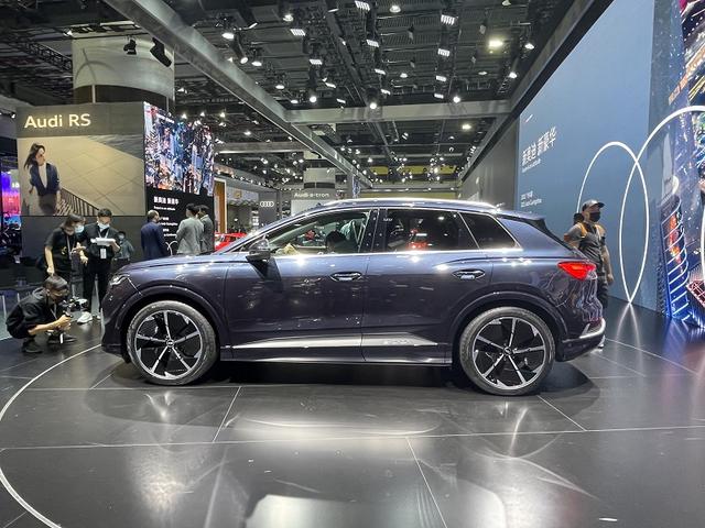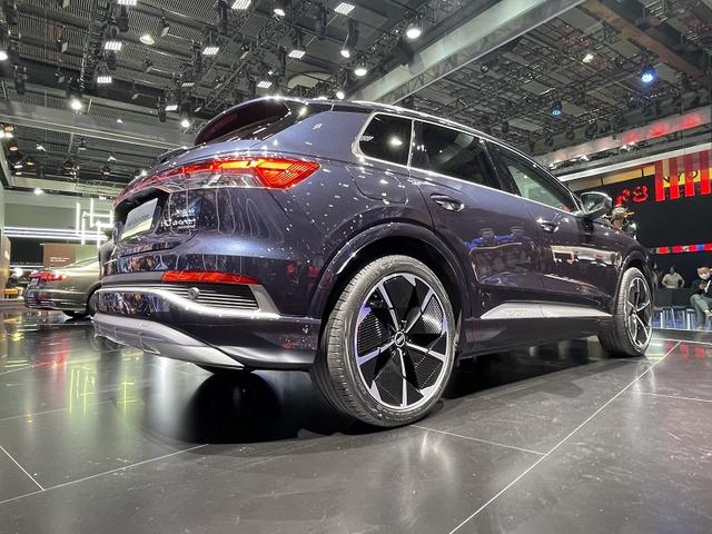 我们再将视角投向本次广州车展现场,奥迪Q4 e-tron今日亮相。这是奥迪首款MEB纯电平台车,拥有三个动力版本,分别是35/40 e-tron和50 e-tron quattro,前者是后轴单电机,后者是前、后轴双电机,最大WLTP续航为520km。其中quattro四驱版0-100km/h加速为6.2s,综合功率220kW,综合扭矩为460N·m。