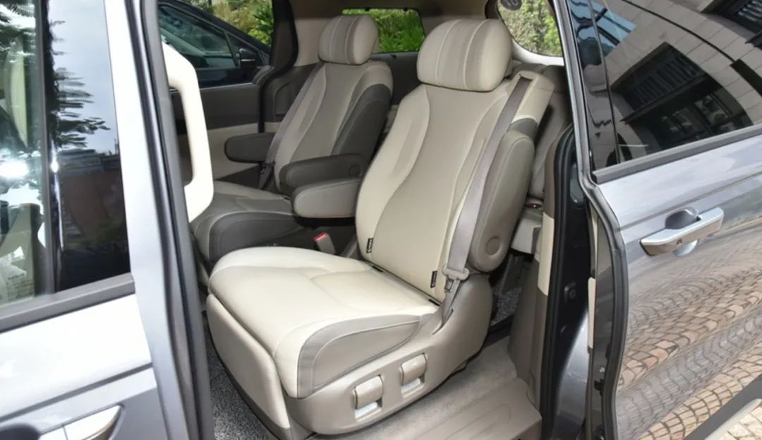 至于中排座椅,两者均支持前后以及靠背调节,而起亚嘉华在这个价位是顶配车型,所以比丰田赛那多出了腿托功能,并且和前排待遇一致,同样拥有加热和通风功能,这点确实称得上降维打击,尤其是对于长途旅行而言,简直不能更实用!