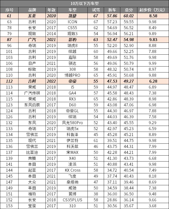 到了10万元以下这个级别,很明显能看出来,基本上是国产自主品牌的天下,合资品牌一个能打的都没有。但也不意味着自主品牌个个都是做工精良、用料上乘,仍要睁大双眼,看清车辆本身素质,毕竟谁的钱都不是大风刮来的。