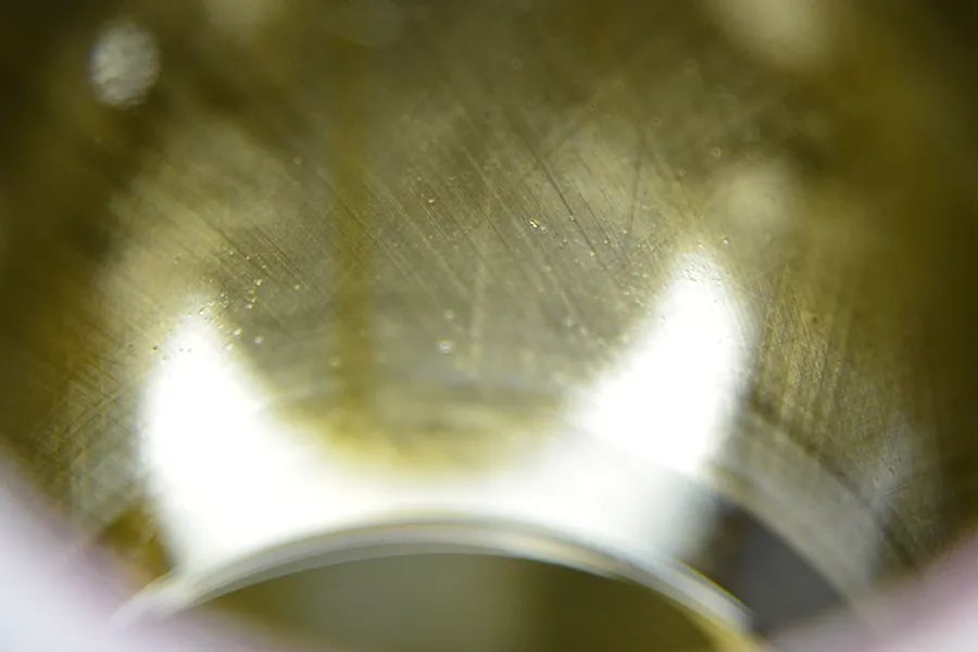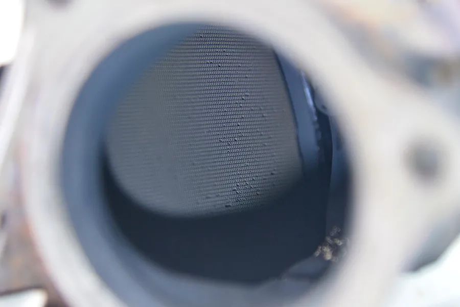 缸壁上有一些网纹状的纹路,这是为了留存一定量的机油,保证活塞的润滑性而特殊设计的。如果是活塞造成的磨损,摩擦纹路应该是上下垂直的,但我们并没有在四个缸壁上看到竖直的纹路,说明即便是超过10万公里,发动机缸壁上并没有出现过度磨损的情况。