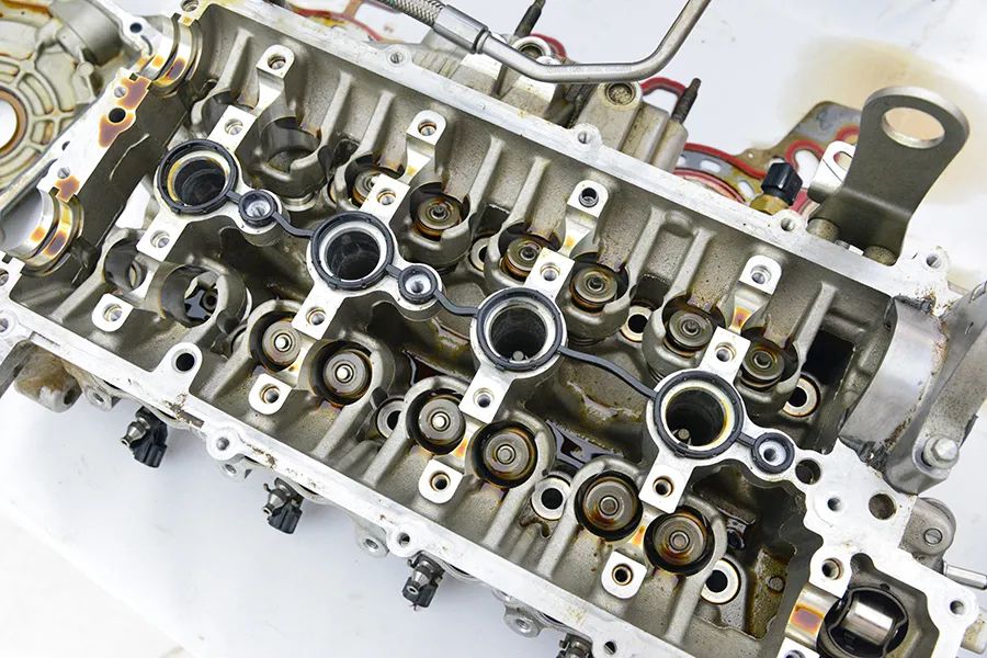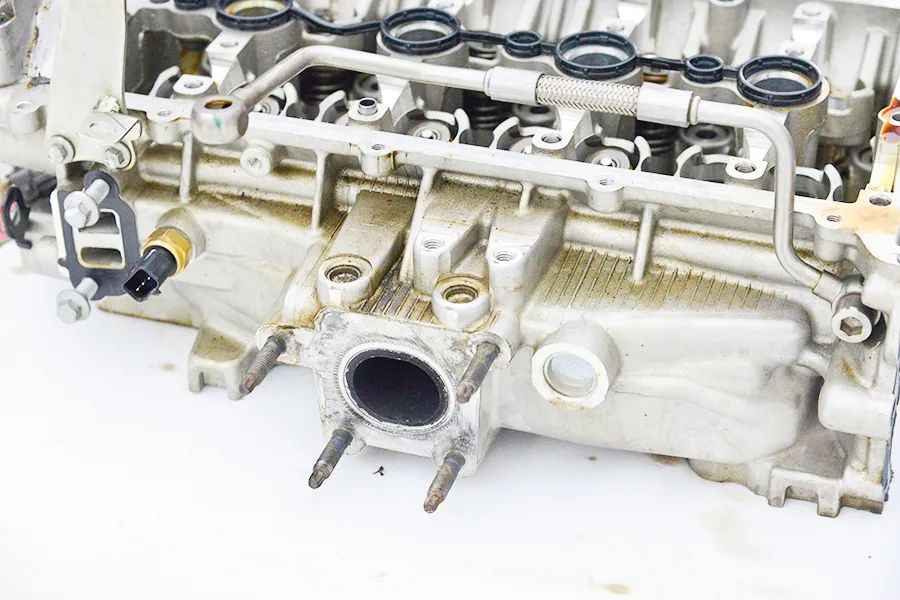 缸盖内部比较干净,没有什么油泥堆积,也没有机油乳化的现象。