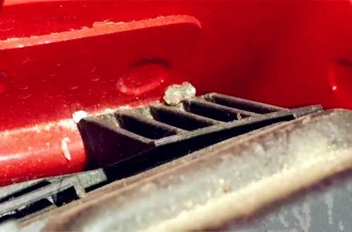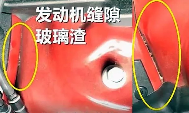 提车回家第6天的时候,嵇先生发现汽车仪表盘左前方崩出了两块玻璃碎片,发动机舱内缝隙中也发现了碎玻璃,吓得他赶紧去找4S店进行理论。