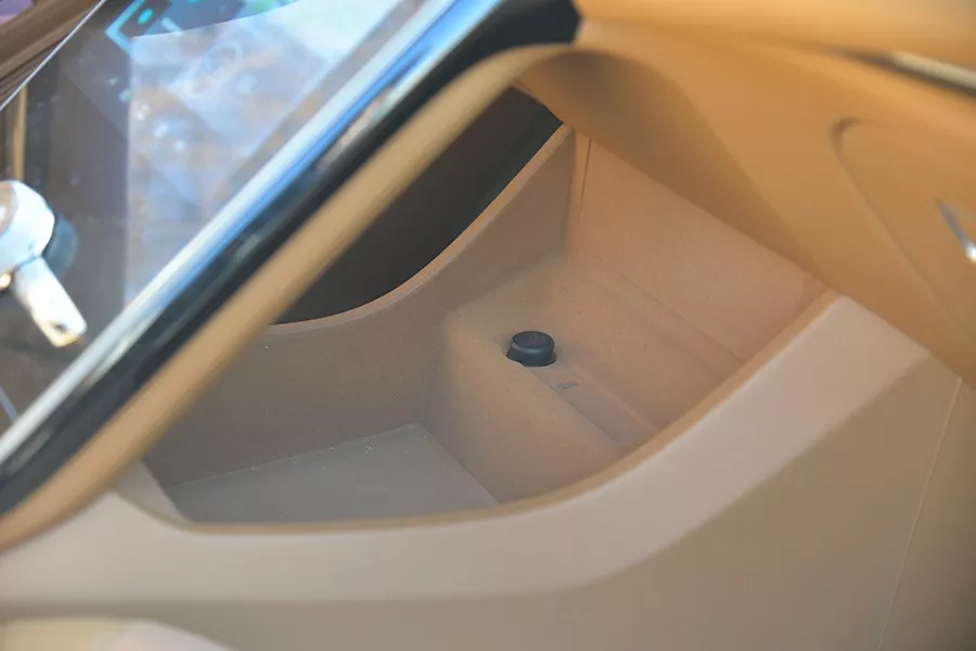 大屏幕下方设计了一个比较大的储物格,可以放一些票据、手机等物件。