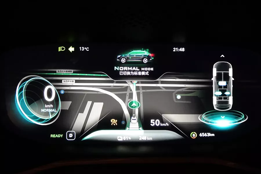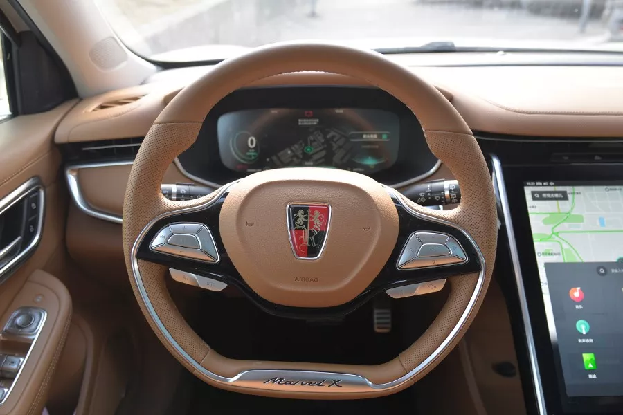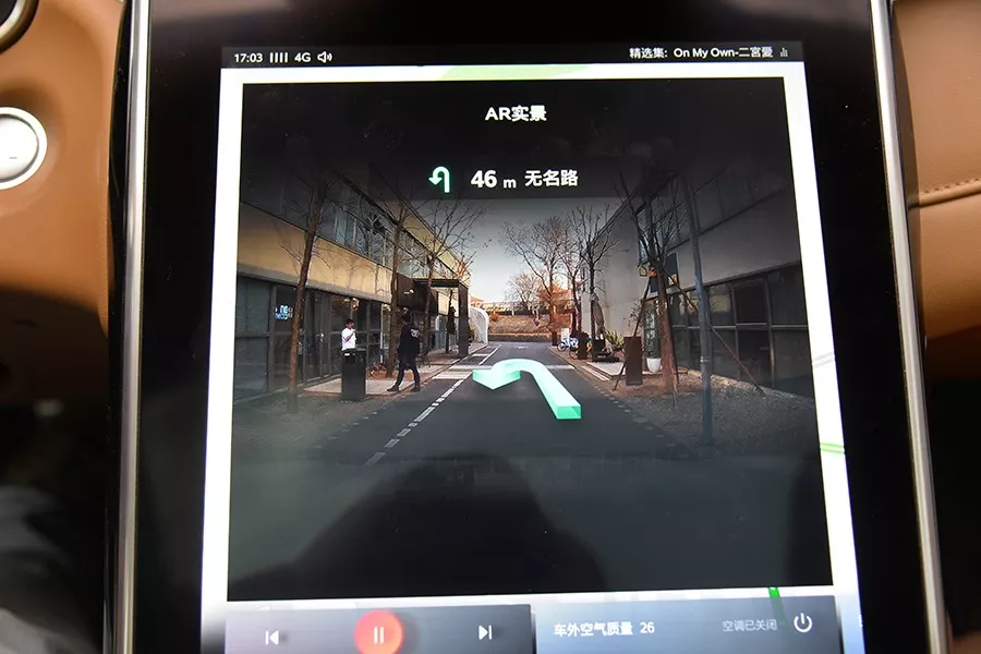 Marvel X标配12.3英寸的全液晶屏仪表盘,支持全屏地图显示以及比较独特的AR地图指示。实际上就是将前摄像头显示的道路图像,增加方向箭头指示,进行导航。