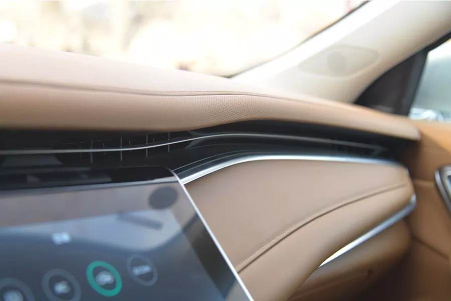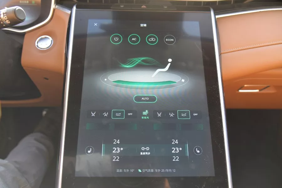 空调出风口采用一体贯穿式设计,带有自动摆风功能,这个设计和Model3很相似。