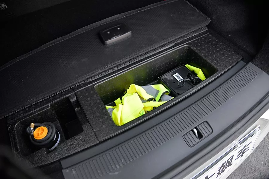 后备箱不大不小,日常代步短途出行,放进两个标准行李箱没有问题。另外,这辆车没有备胎,提供了补胎液应急使用。