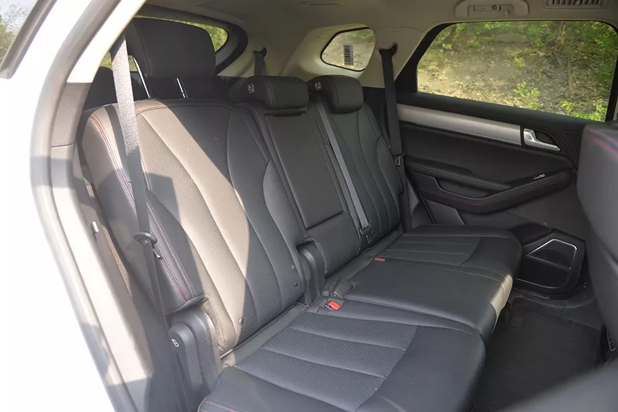 第三排座椅舒适度非常一般,原以为2800多毫米的轴距能给第三排带来一定空间,结果并非如此,如果第二、三排满员的话,每个人都会很局促。尤其是第三排,腿部和头部空间都比较小,所以这辆车的第三排也就是临时应急用用。
