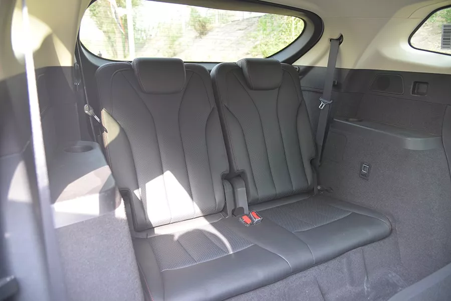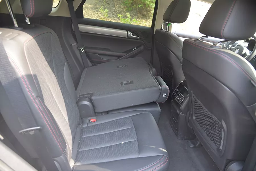 这辆车第二排支持座椅4/6比例放倒,但第三排只能从车辆右侧进行上下。然而后门的开门角度小,第二排乘客上车都比较费劲,因此留给第三排乘客上车的通道会更小。所以,如果腿脚不太灵便的话,最好别尝试这辆车的第三排。