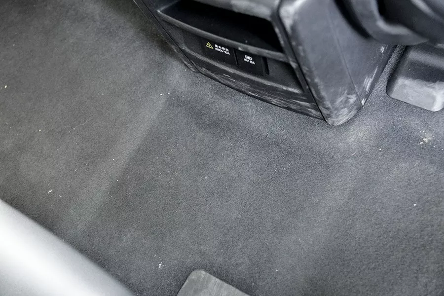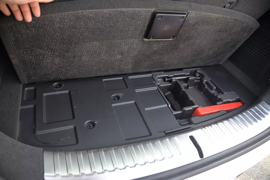 另外,由于后置驱动电机,所以这辆车没有备胎,只有打气泵、补胎液,随车工具放置在后备箱盖板下方。这款车全系都是电动后尾门,并带脚踢功能。