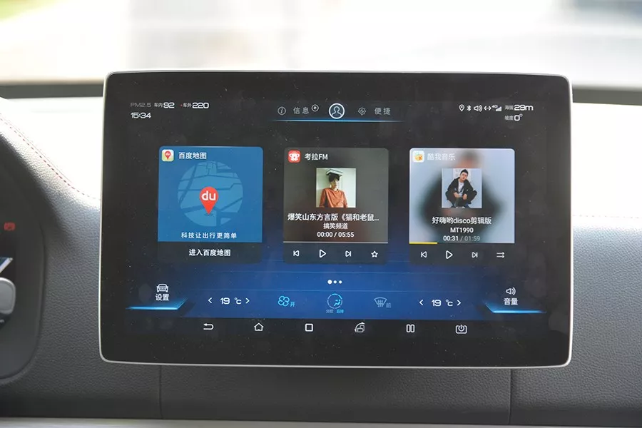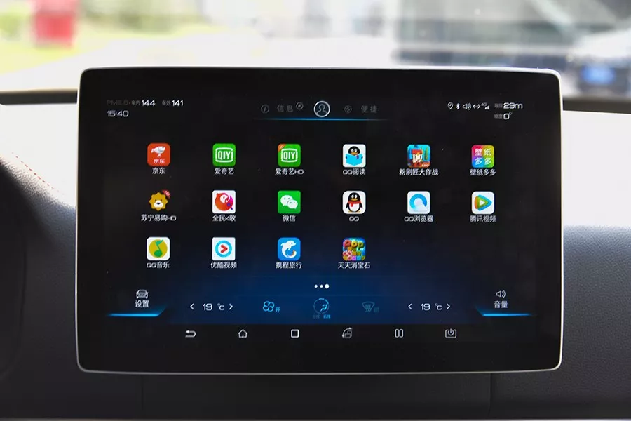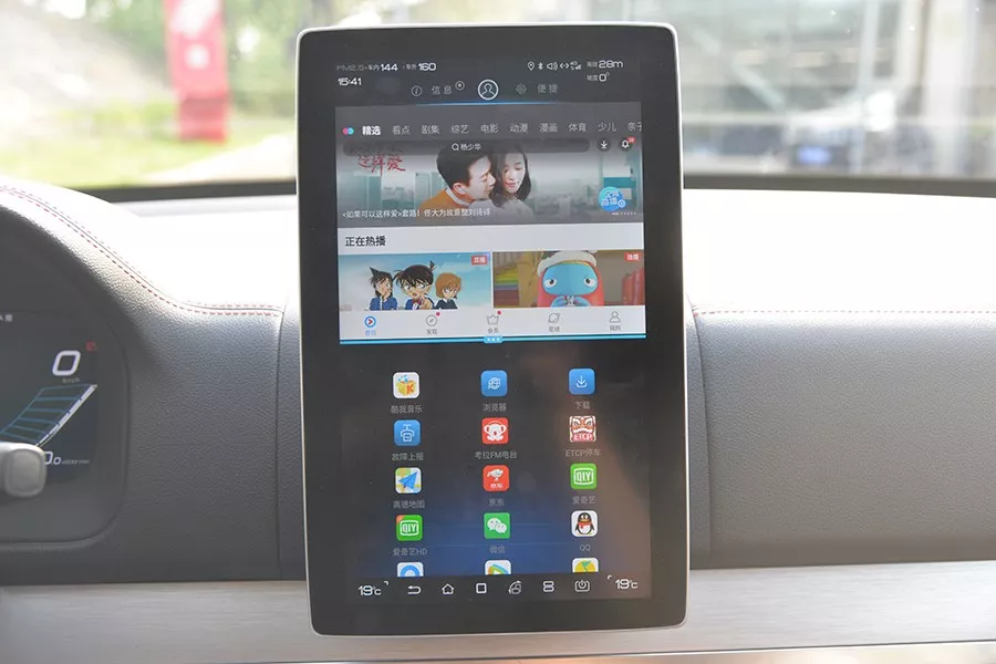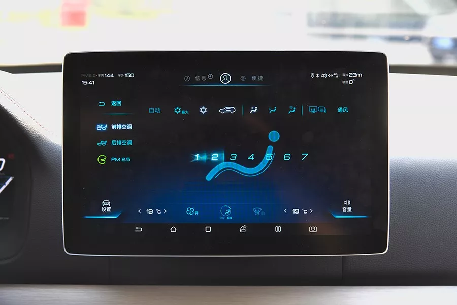 虽然全系支持可横竖旋转的中控屏,但我们这辆中低配的尺寸只有12.8英寸,高配的尺寸是14.6英寸,两者之间在功能上没任何差别,都是一个号称“8核处理核心”的安卓平板,支持语音操作、导航、车联网……