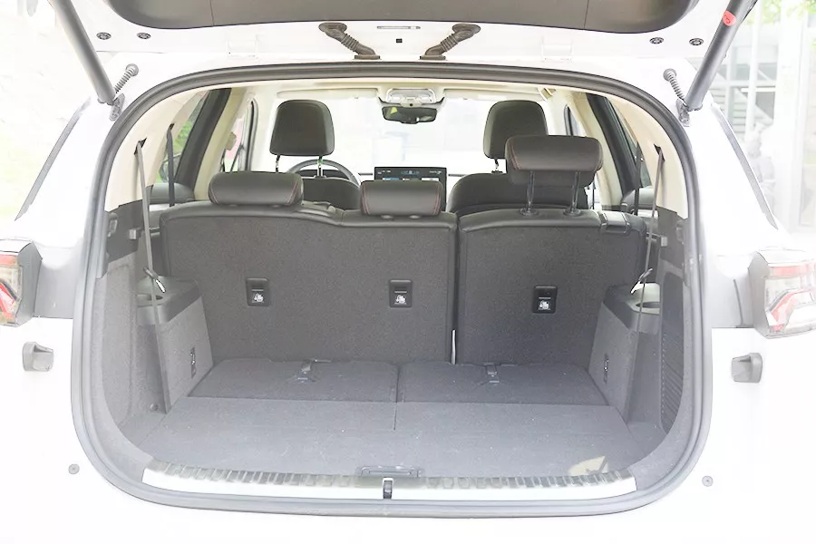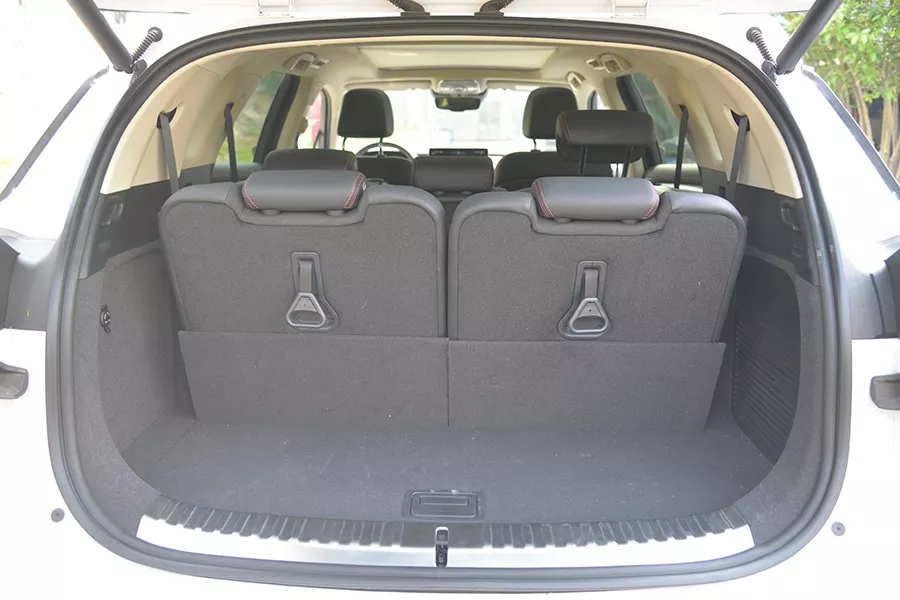 如果放倒第三排座椅,后备箱空间相当充裕,应付长途旅行绝对没问题。如果打开第三排座椅,后备箱空间也要比之前的宋MAX大,能放进一两个标准登机箱。
