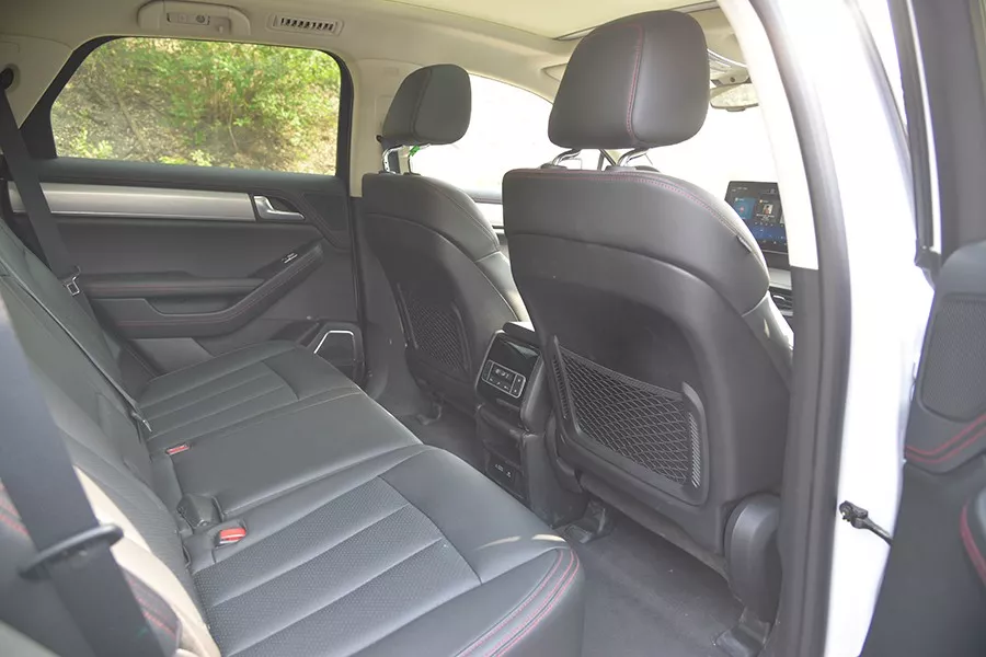 座椅舒适度相对尚可,软硬度一般,但也没有过多的不适感,在国产自主品牌中属于中等偏上水平。另外,电动座椅调节方式与之前的比亚迪相似,都是设计在车门上,类似奔驰的调节方式。看来前奔驰的内饰设计师不是白挖的。