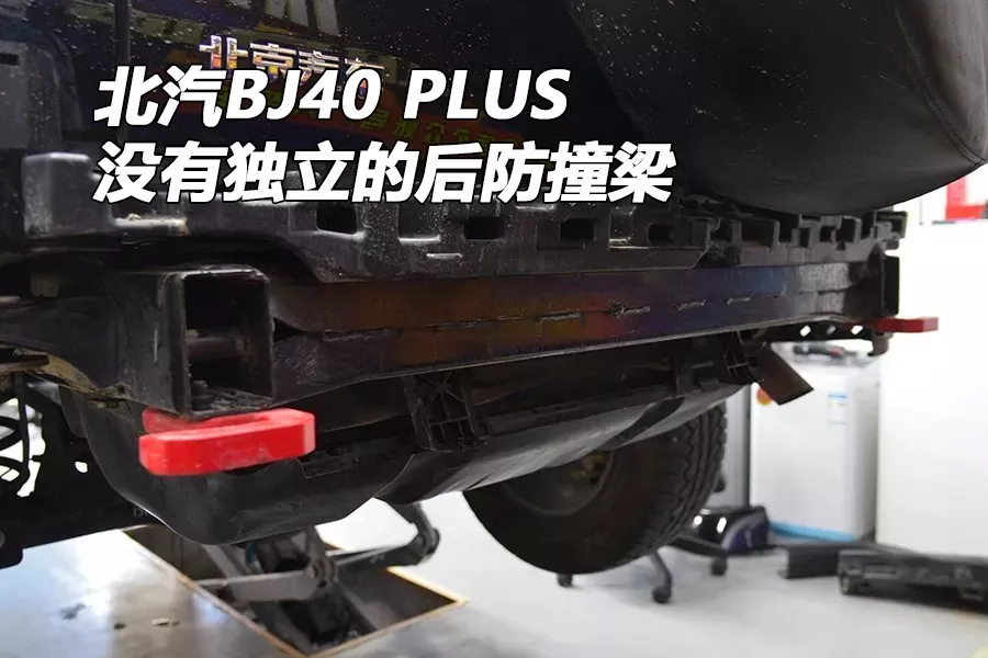 拆掉后保险杠,虽然有一根横梁,但实际上这并不是后防撞梁,而是非承载车架的一部分。这种情况和之前拆过的非承载车身的大通D90颇为相似。