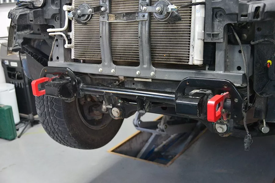 之前说过这辆北汽BJ40 PLUS车头内藏两个固定拖车钩,那么其内部结构什么样?今天就拆开一探究竟。