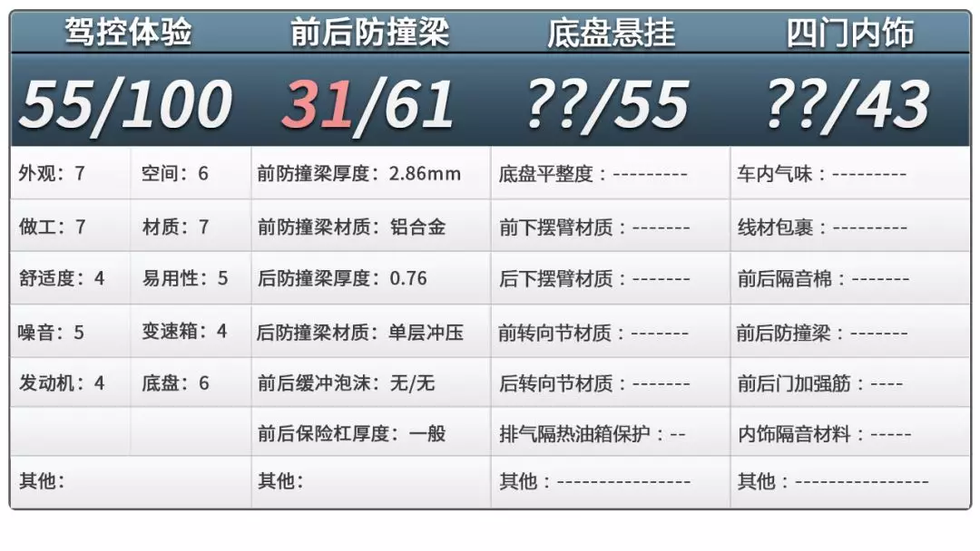 那么关于这辆车的底盘情况如何,请继续关注后续的拆车内容。(本文及视频中的测量数据结论观点仅对此辆车负责,测量数据对公示的实验方法负责。)
