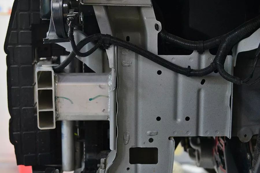 本来防撞梁上有4个安装孔位,结果只装了两颗螺丝,居然得到了大众的“真传”。