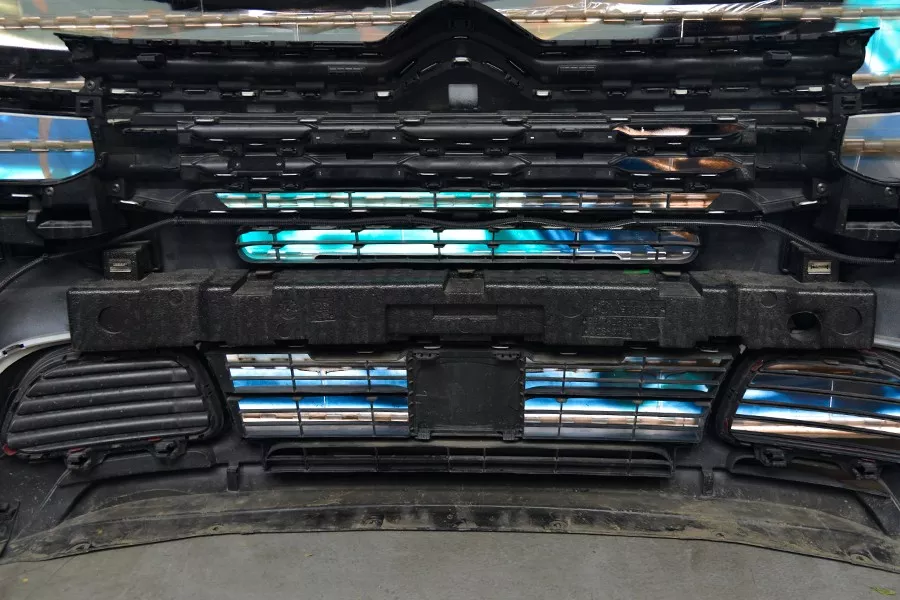 有意思的是,我们发现了两个挂钩,可以先把防撞梁挂上,再拧螺丝,方便工人进行装配,而且单人就能完成,可以减少一个劳动力。这个源于法国的设计被保留了下来,其实在中国大可不必,但对于每周工作时长只有30-35个小时,还经常罢工的法国来说,减少人力成本、提高工作效率才最重要。