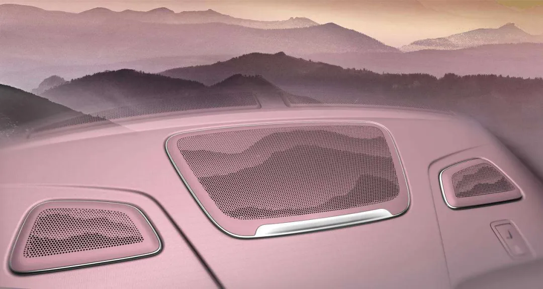 此外,在一些细节设计上红旗H9同样不乏“中国元素”,比如那个带有山水纹理样式的Bose音响,独特的纹理呈现出一副中国古典山水画意境般的设计,复古的样式和车内双联屏造型相融合,典雅又科技。