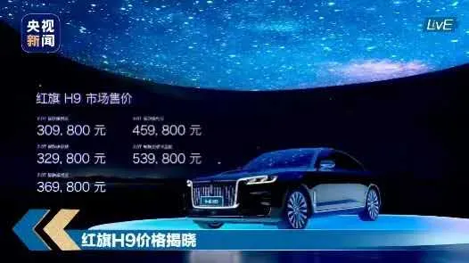 8月23日,红旗H9正式上市,售价30.98万元起。