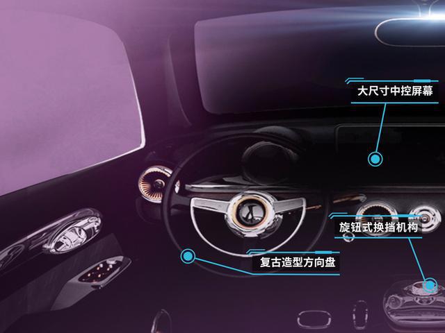 内饰设计也是复古味特别重,特别是方向盘的设计样式,还有联屏的设计、大量的镀铬装饰,“涡轮”造型的出风口,科技感和时尚感都有了。