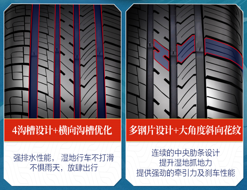 以前不久参加过实测的SUV轮胎飞跃虎跃为例,在静音性能方面、多路况适应能力方面、雨天刹车安全方面都做了很多强化设计,作为一款国产老牌企业出品的轮胎,虎跃性价比很高。