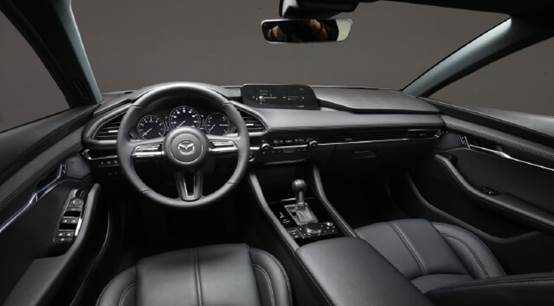 接着来看看昂克赛拉的方向盘,昂克赛拉的整个驾驶位就十分有设计感,方向盘采用丁字形设计,仪表盘的线条也十分流线。
