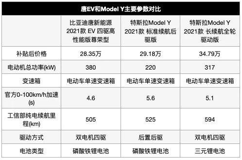 你看,人家特斯拉Model Y就没想当什么“价格屠夫”,要不然就定价20万元了;说它是“性能SUV王炸”也不合适,加速也跑不过唐EV啊,哪怕同样四驱、价格更高的中配Model Y一样跑不过唐EV。