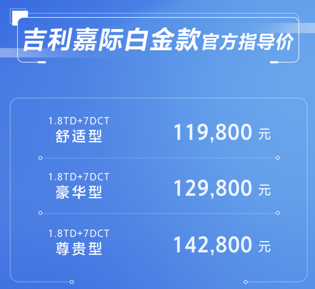 售价11.98万元起 白金舒享MPV吉利嘉际白金款正式上市