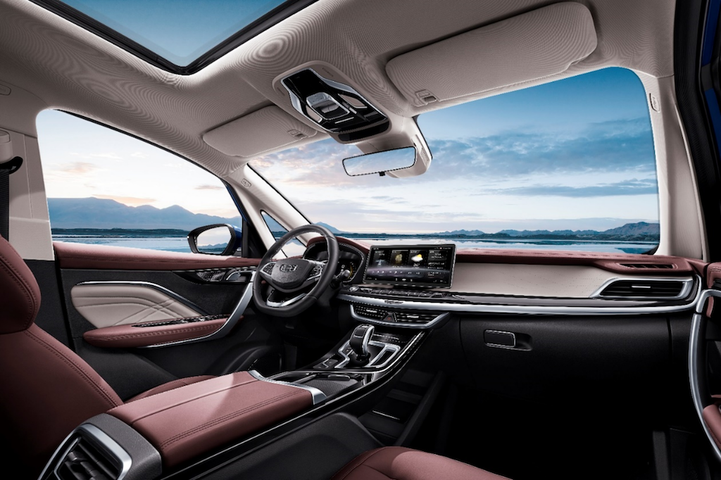 内饰上,嘉际白金款标配匠心棕色高端内饰,以现代设计演绎新中式风格,彰显出经典又奢华的30万级豪华座舱氛围。座椅、门板采用大面积的软质包覆,配合精致折扇绗缝设计,行坐间,高贵感油然而生。还有上下LOFT设计的双层豪华中央通道、炫酷手势感应顶灯、1.06㎡云际智能全景天窗、7英寸全液晶高清仪表等,更显出内部空间的优雅与豪华。